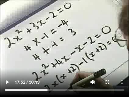 This video is all about finding the solutions of quadratic equations. These take the form ax2+bx+c = 0. It looks at four methods: factorisation, completing the square, using a formula, and finding the solutions by using graphs. -