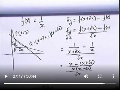 Differentiation is about rates of change for example, the slope of a line is the rate of change of y with respect to x. To find the rate of change of a more general function, it is necessary to take a limit. This is done explicitly for a simple quadratic function. -